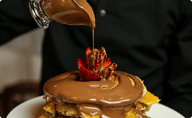 Bogata i gęsta, z wyraźnym aromatem ziaren kakaowych i delikatną, szlachetną goryczką. Idealny wybór dla osób ceniących czystość smaku i głębię posmaku. Pasuje do kawy, wytrawnego wina lub jako samodzielny deser.